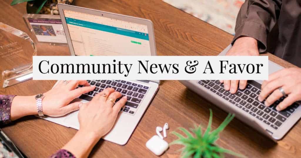 Today’s post is a little different. I have some specific community things to share and a favor to ask.